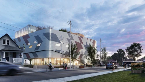Toronto Public Library (TPL) is replacing the existing Dawes Road Library that has overreached capacity. It includes the Social Development Finance & Administration Hub (SDFA Hub), offering complementary community-based programming. Founded on regional Indigenous principles, it welcomes knowledge sharing between people from all cultures, creating a sense of place that is rooted in millennia of Anishinaabe, Haudenosaunee, and Huron-Wendat inhabitation and cultural activity that continues to the present.
